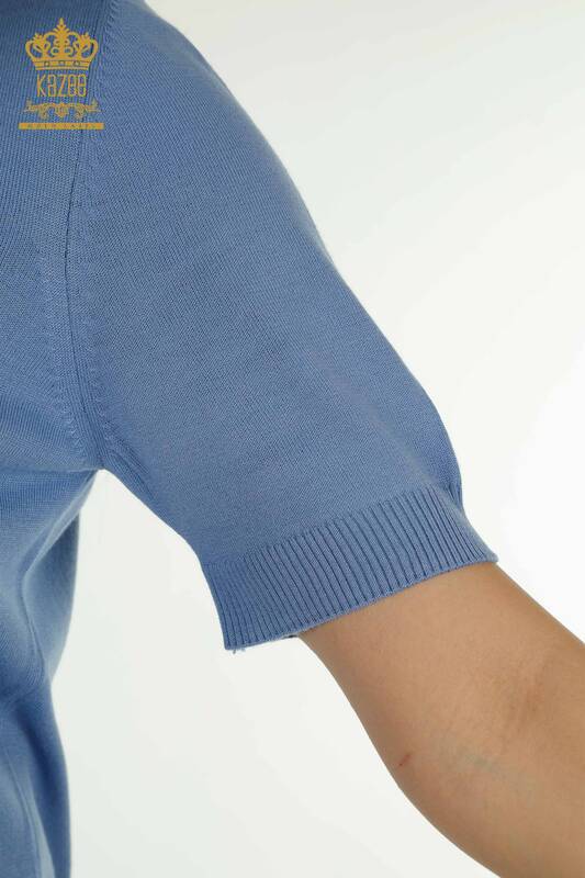 Оптовая продажа женского трикотажа Свитер с каменной вышивкой и коротким рукавом синий - 30460 | КАЗИ