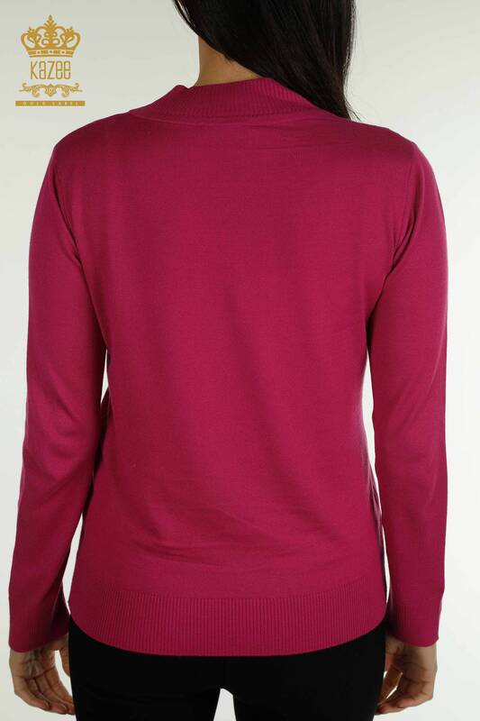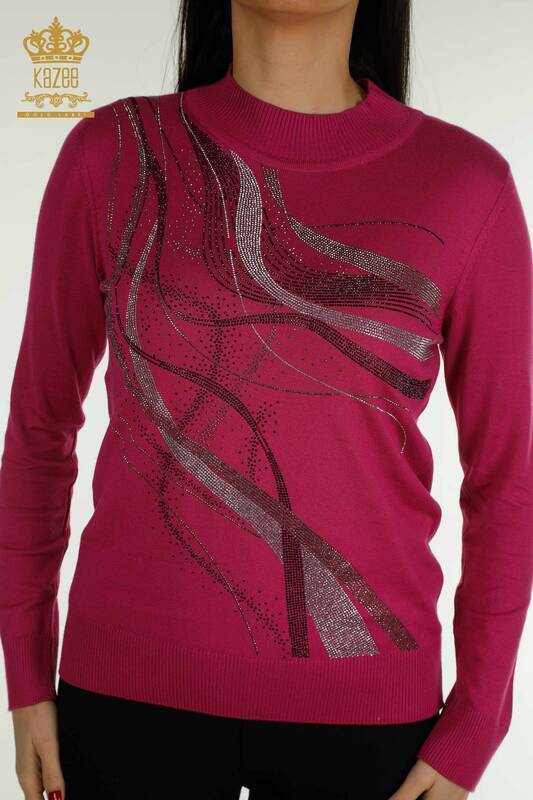 Женский трикотаж оптом Свитер с вышитым кристаллическим камнем воротник-стойка цвета фуксия - 30469 | КАЗИ