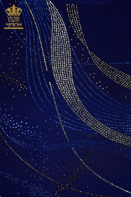 Женский вязаный свитер оптом с вышитым воротником-стойкой Crystal Stone Saks - 30469 | КАЗИ