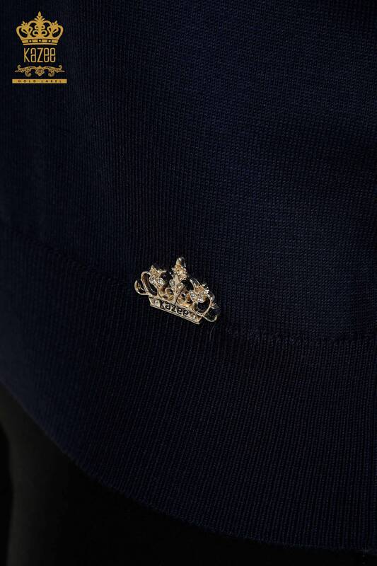 Женский трикотаж на пуговицах свитера с V-образным вырезом, темно-синий оптом - 30139 | КАЗИ