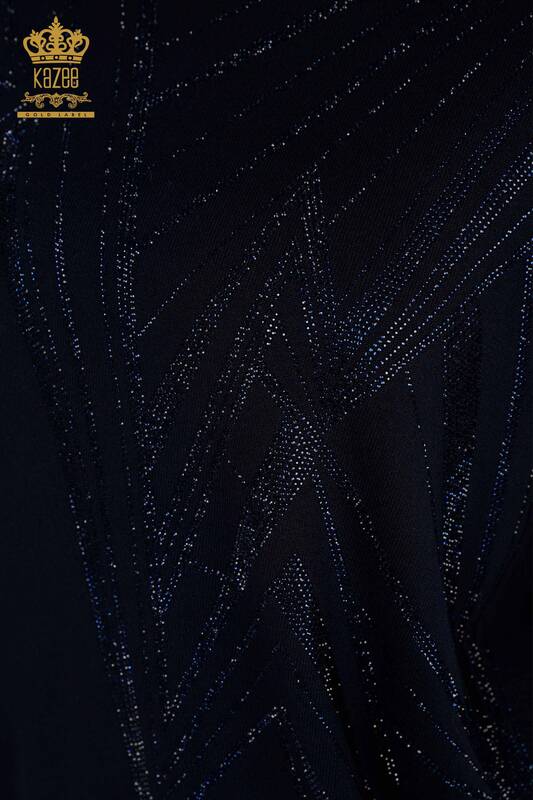 Оптовая продажа Женский трикотаж Свитер с круглым вырезом Темно-синий с каменной вышивкой - 30027 | КАЗИ