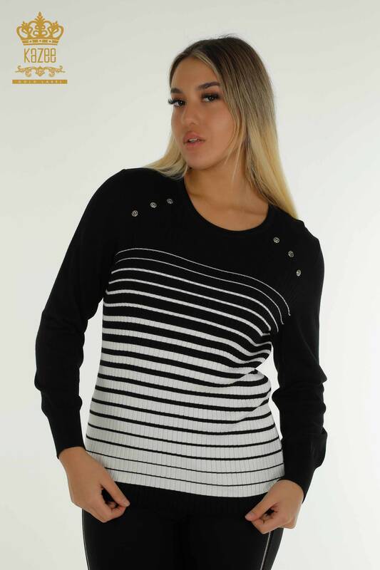 Женский свитер из трикотажа оптом с длинными рукавами, черный, экрю - 30079 | КАЗИ