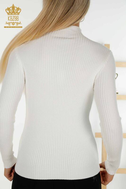 Оптовая продажа женского трикотажного свитера на пуговицах с воротником-стойкой цвета экрю - 30394 | КАЗИ