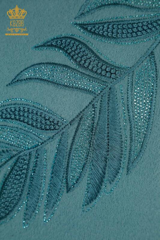Оптовая продажа женского трикотажного свитера с капюшоном из ангоры с вышивкой в виде листьев мяты - 40008 | КАЗИ