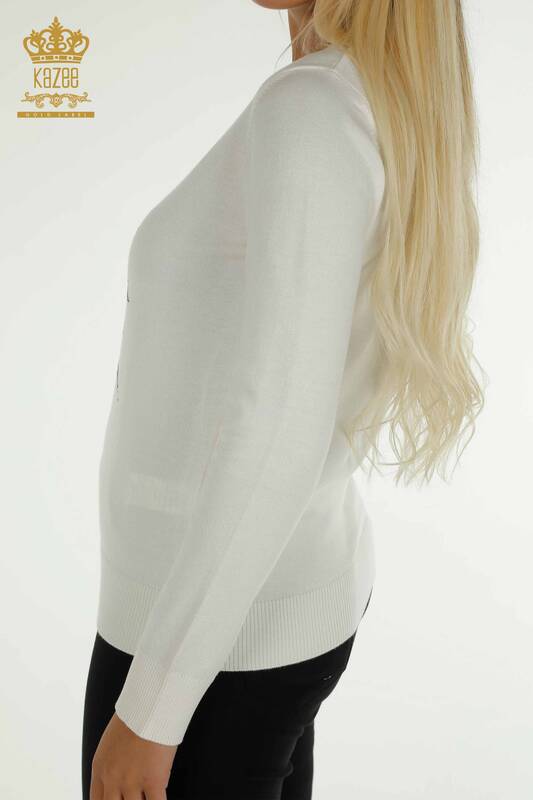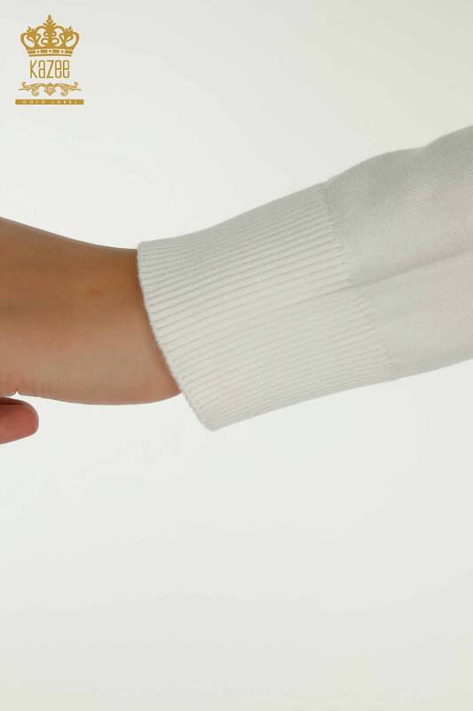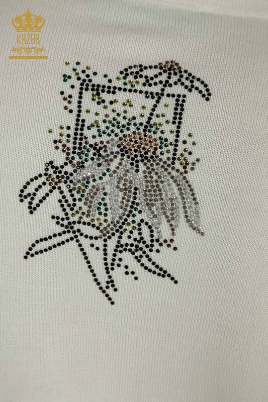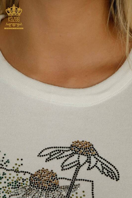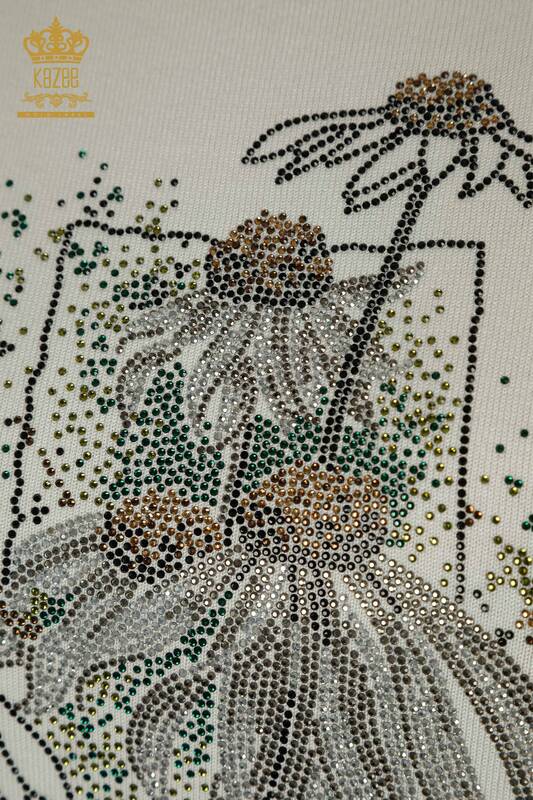 Оптовая продажа женского трикотажа Свитер с цветочной вышивкой, вышитый камнем, экрю - 30612 | КАЗИ