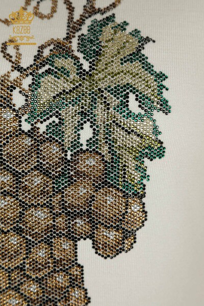 Женский трикотаж оптом, свитер с виноградным узором и вышивкой камнями, экрю - 30488 | КАЗИ