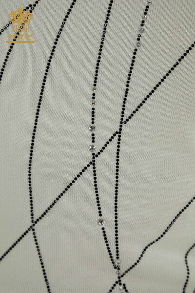 Оптовая продажа женского трикотажа Свитер-стойка с воротником-стойкой и каменной вышивкой с длинным рукавом цвета экрю - 30454 | КАЗИ