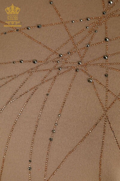 Оптовая продажа женского трикотажа Свитер-стойка с воротником-стойкой и вышитым камнем пудрой с длинными рукавами - 30454 | КАЗИ