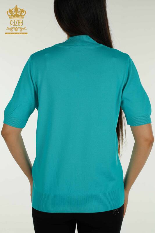 Женский трикотаж оптом, свитер американской модели с воротником-стойкой, вискоза, бирюзовый - 16168 | КАЗИ