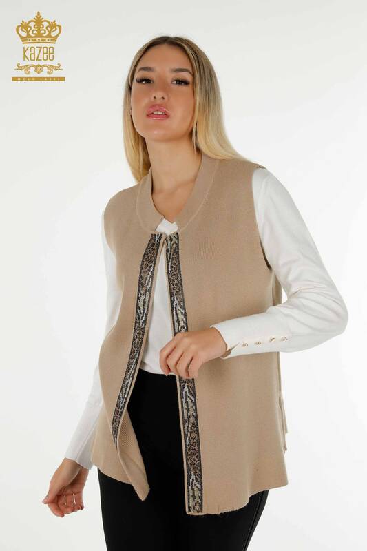 Женский жилет с леопардовой вышивкой оптом, бежевый - 30616 | КАЗИ