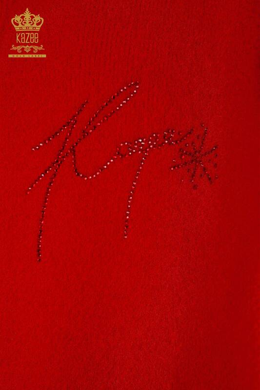 Женский жилет оптом с двумя карманами, завязанный веревкой, красный с каменной вышивкой - 30582 | КАЗИ