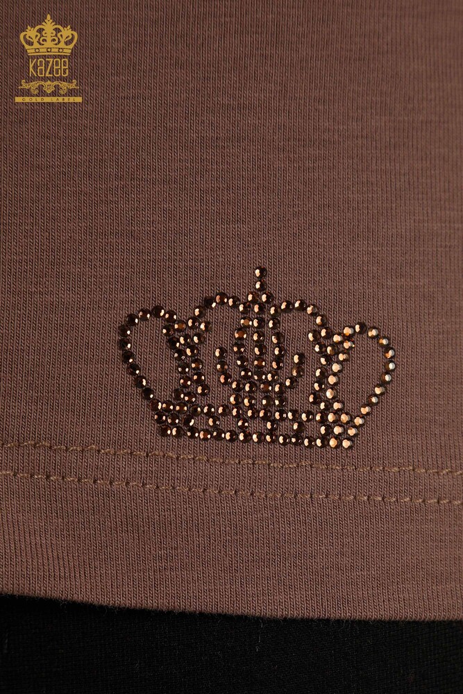 Женская блузка оптом с коротким рукавом и круглым вырезом, коричневая - 79562 | КАЗИ