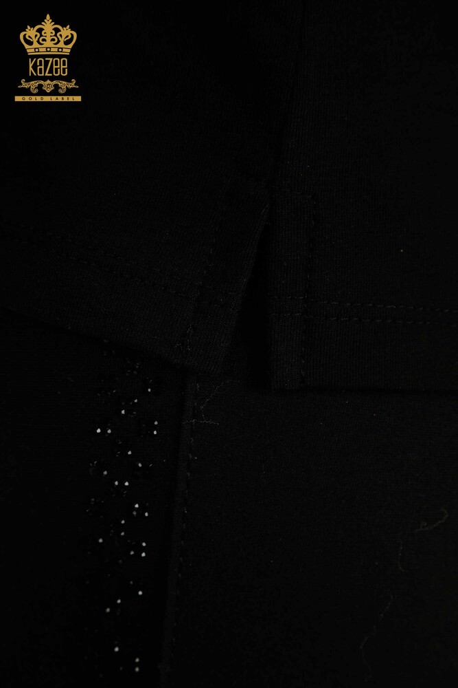 Оптовая женская блузка с карманом и цветочным узором, вышитая черным камнем - 79477 | КАЗИ