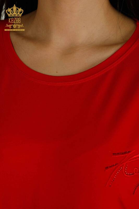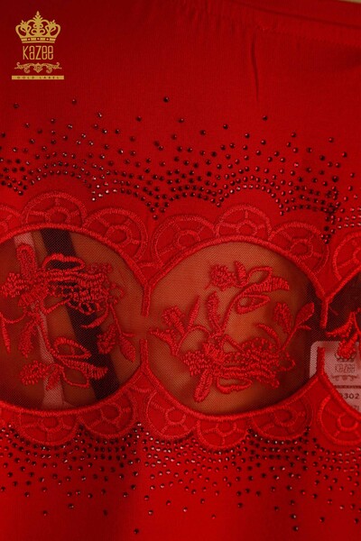 оптовая продажа женская блузка с коротким рукавом вышитый камнем тюль подробный красный - 79302 | КАЗЕЕ