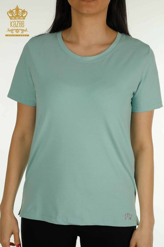 Женская блузка с коротким рукавом оптом, мятная - 79563 | КАЗИ