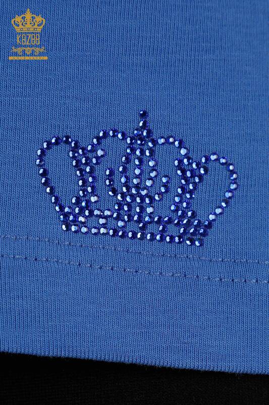Оптовая женская блузка с коротким рукавом и вышитыми камнями Саксами с V-образным вырезом - 79561 | КАЗИ