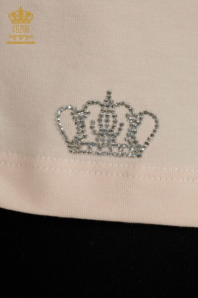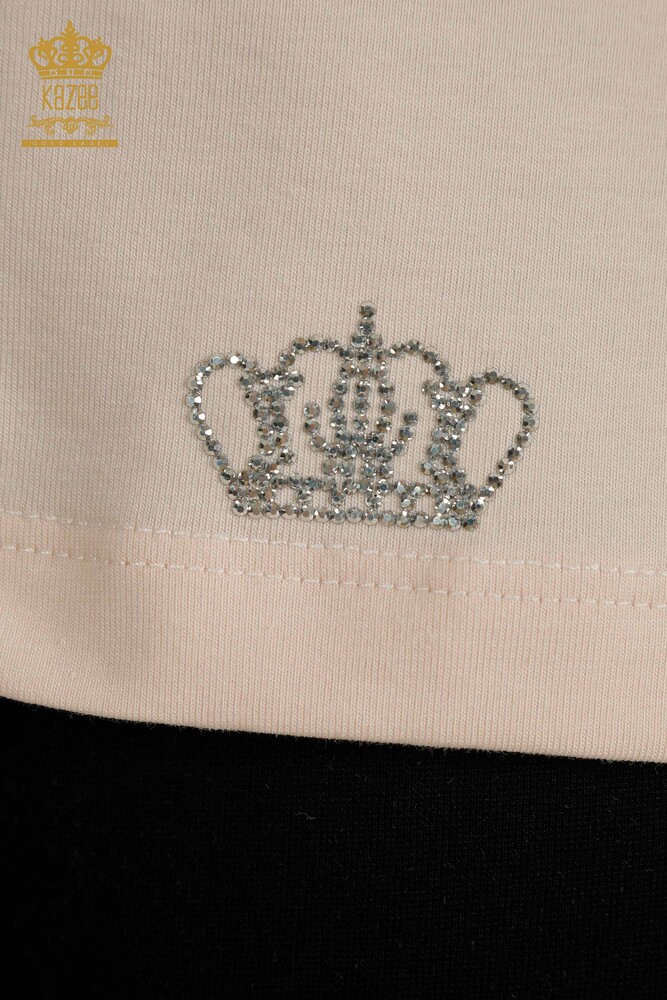 Оптовая женская блузка с V-образным вырезом и вышитым камнем логотипом Light Powder - 79564 | КАЗИ