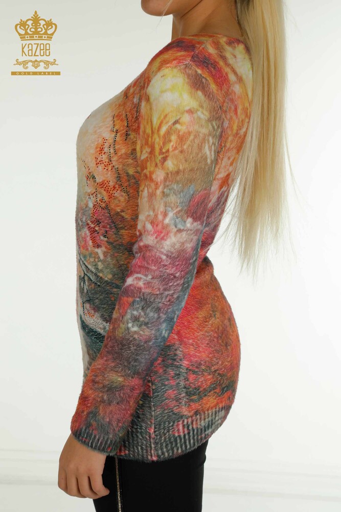 Женский трикотаж из ангоры оптом Женский принт с каменной вышивкой в цифровом формате - 40012 | КАЗИ