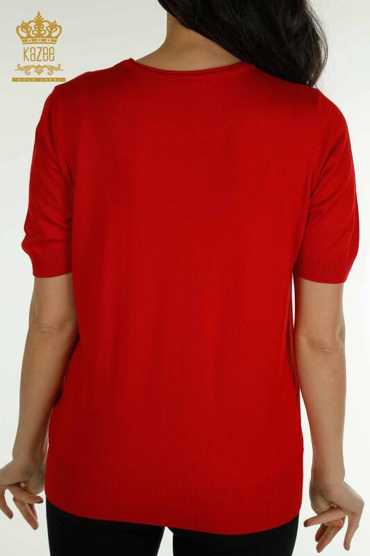 Оптовая продажа женского трикотажного свитера американской модели с каменной вышивкой красного цвета - 30649 | КАЗИ