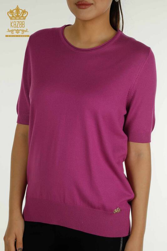 Женский трикотаж оптом, свитер американской модели с базовым логотипом, сиреневый - 15943 | КАЗИ