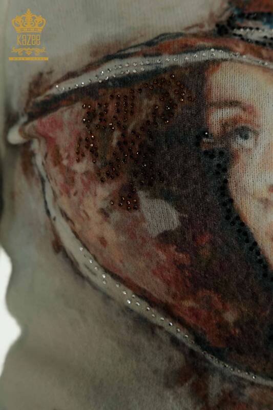 Женский вязаный свитер из ангоры оптом с цифровой печатью и длинным рукавом с цифровой вышивкой - 40042 | КАЗИ