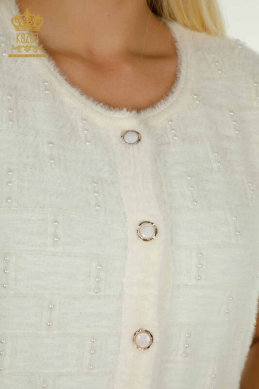 Женский жилет без рукавов с бусинами оптом из ангоры экрю - 30739 | КАЗИ