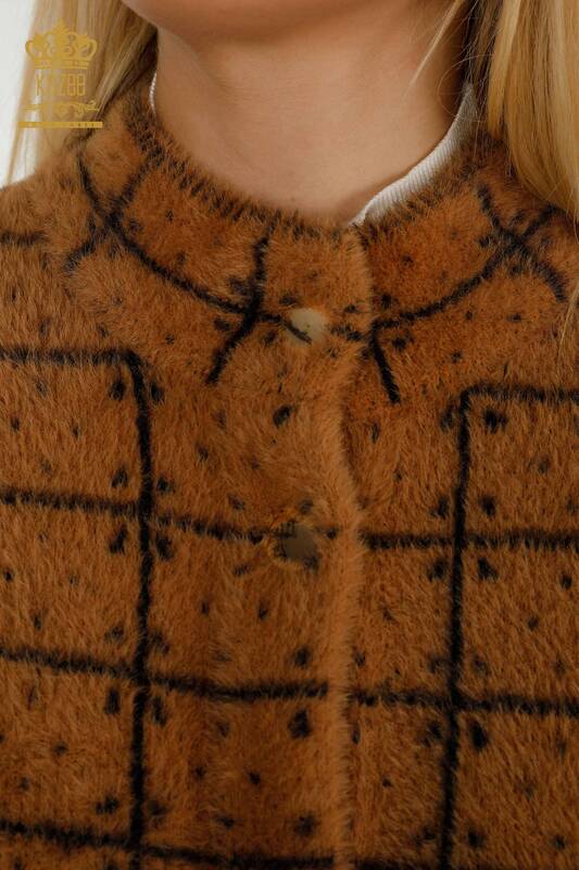 Женский кардиган оптом, двухцветный, из ангоры с карманом, коричневый, черный - 30592 | КАЗИ