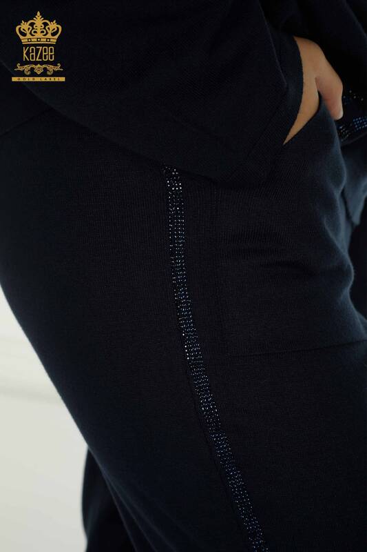 Женский спортивный костюм оптом, с каменной вышивкой, на молнии, темно-синий с леопардовым узором - 16662 | КАЗИ