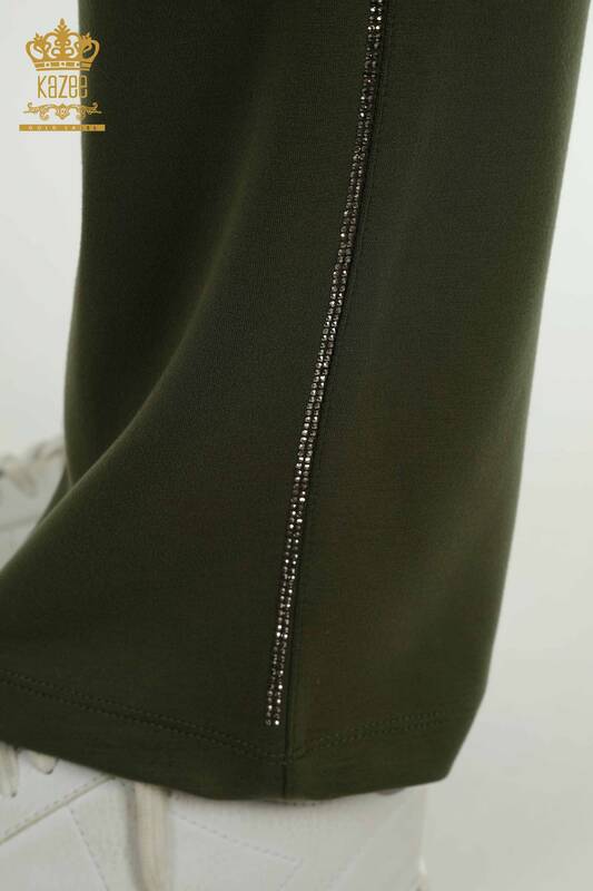Оптовая продажа женского спортивного костюма с коротким рукавом и каменной вышивкой на молнии с карманом цвета хаки - 17636 | КАЗИ
