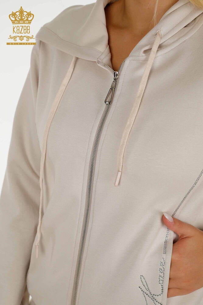 Женский спортивный костюм оптом с капюшоном и застежкой-молнией с вышивкой камнями - 17550 | КАЗИ