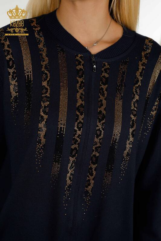 Женский спортивный костюм оптом с карманами на молнии и вышивкой темно-синего цвета - 16280 | КАЗИ