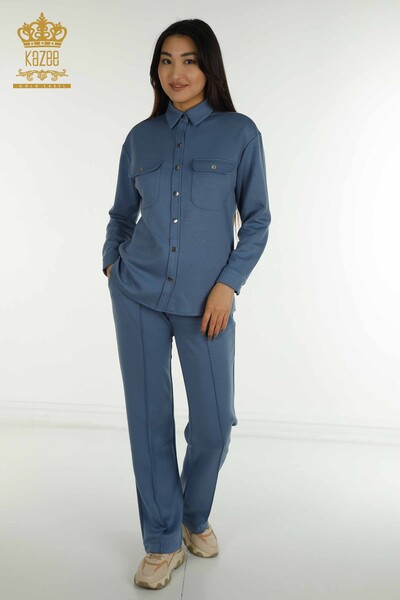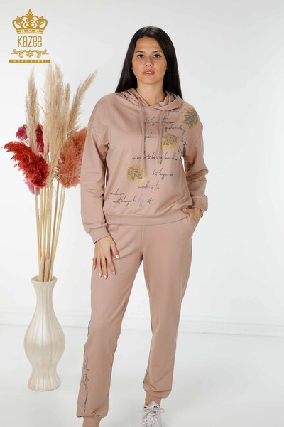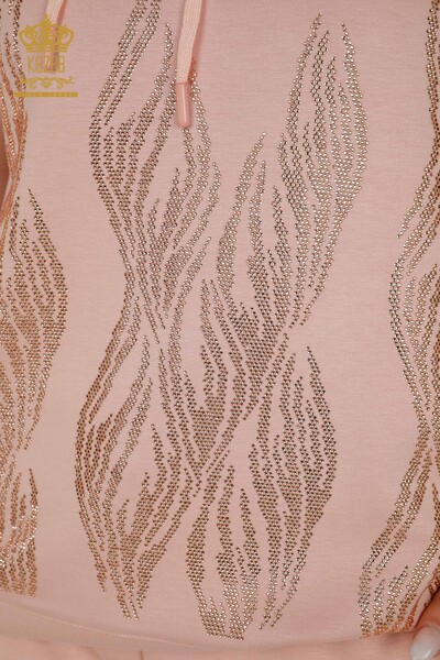 Оптовая продажа женского спортивного костюма с каменной вышивкой и карманом с капюшоном - 17566 | КАЗИ