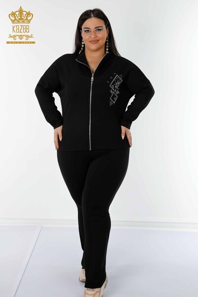 Оптовый женский спортивный костюм с вышивкой и карманами с капюшоном цвета экрю - 17566 | КАЗИ