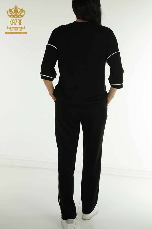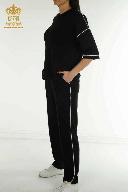Женский спортивный костюм оптом с карманами, базовый черный с коротким рукавом - 17698 | КАЗИ