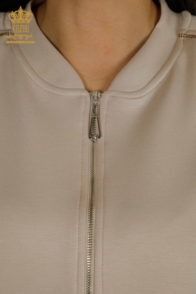 Оптовая продажа Женский спортивный костюм с короткими рукавами и вышивкой на молнии из норки - 17680 | КАЗИ