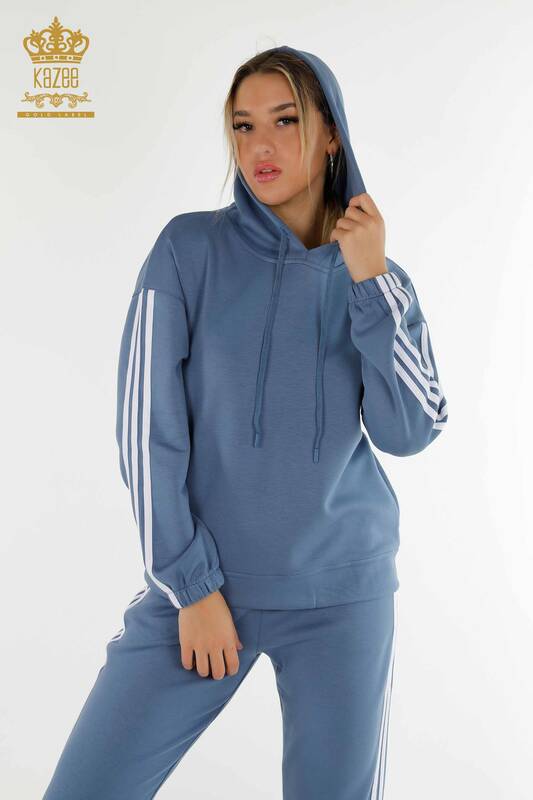 Оптовая продажа женского спортивного костюма в полоску с капюшоном, цвет индиго, белый - 17567 | КАЗИ
