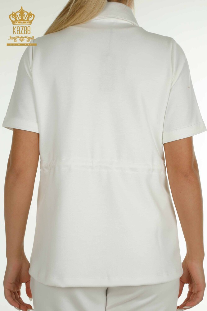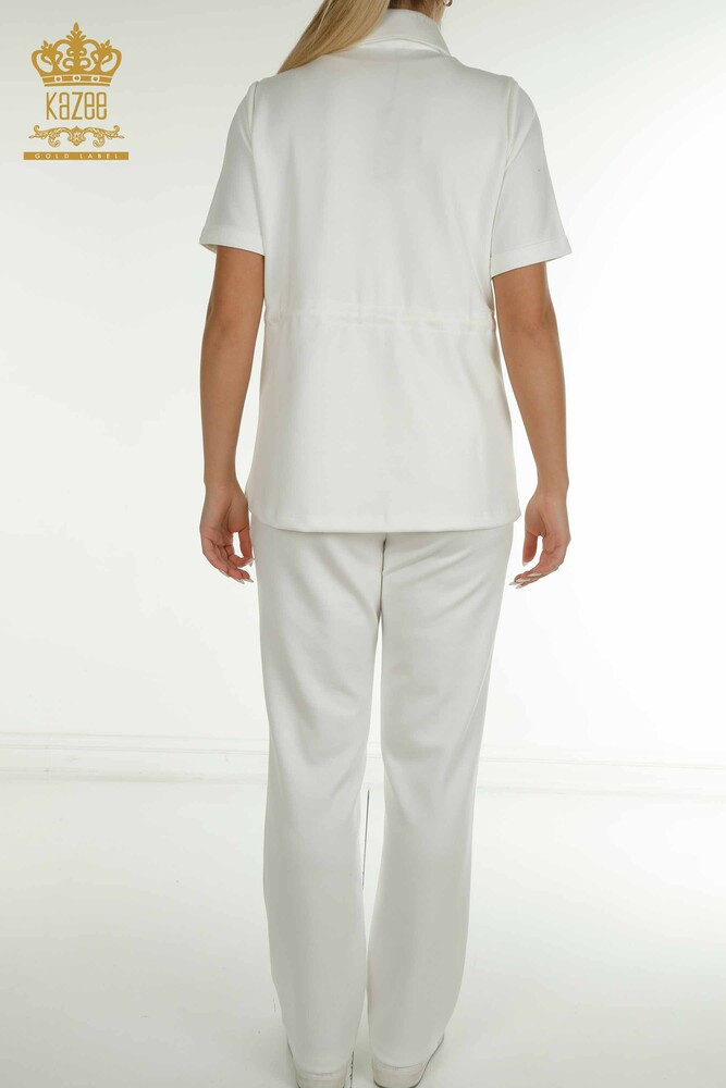 Женский тройной спортивный костюм оптом с детальным карманом на пуговицах и короткими рукавами цвета экрю - 17633 | КАЗИ