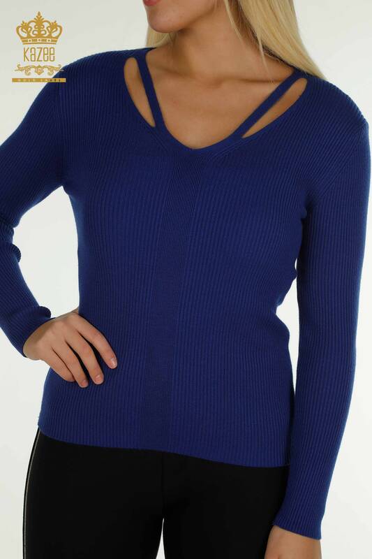 Женский вязаный свитер с воротником Basic Saks оптом - 30392 | КАЗИ