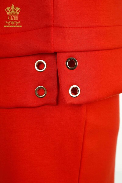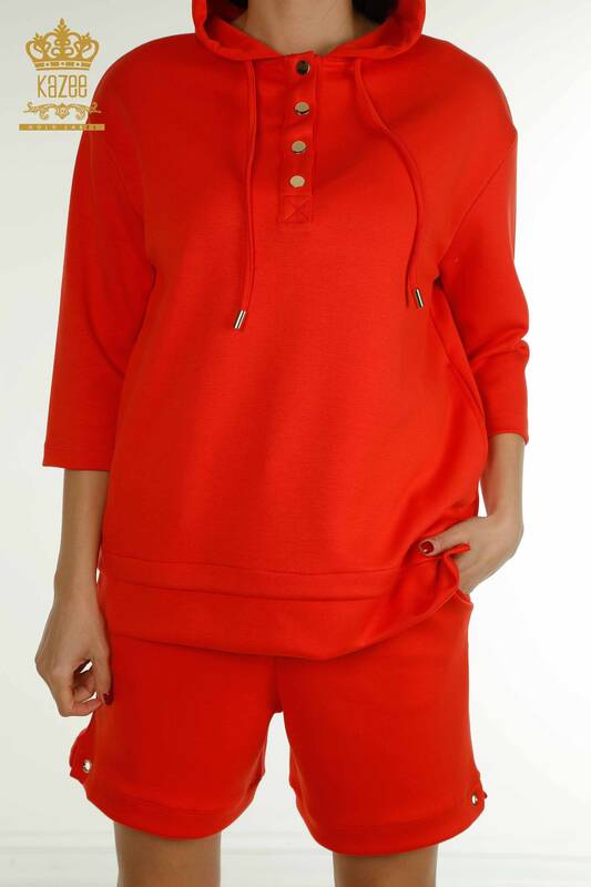 Оптовый женский спортивный костюм с шортами и пуговицами с капюшоном, оранжевый - 17695 | КАЗИ