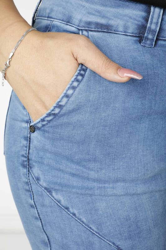 Pantalón Azul con Detalle de Texto y Bordado de Piedras - 3677 | KAZEE (Juego de 4 42-44-46-48)