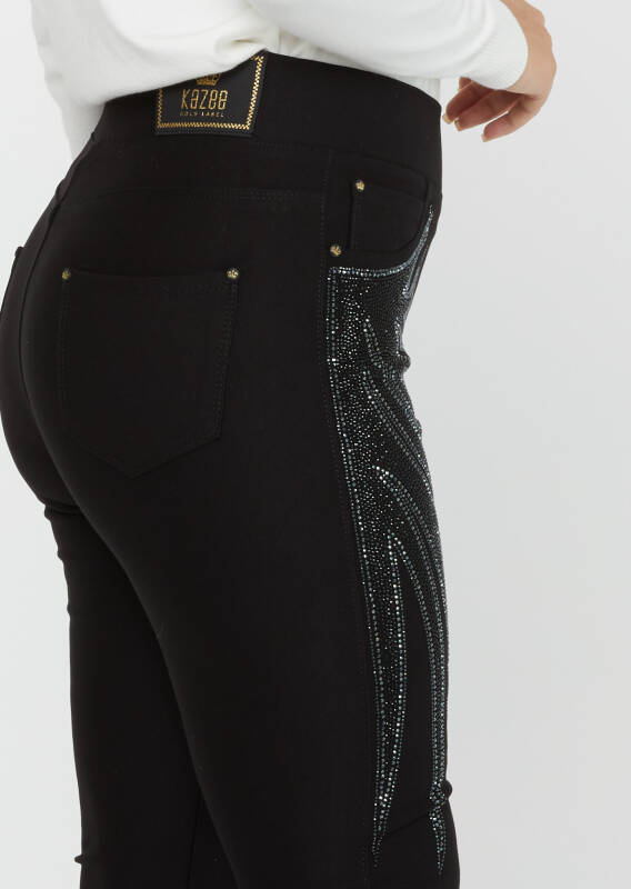 Pantaloni Wing Stone Ricamo Elastico In Vita Nero - 3771 | KAZEE (Set da 4 42-44-46-48)