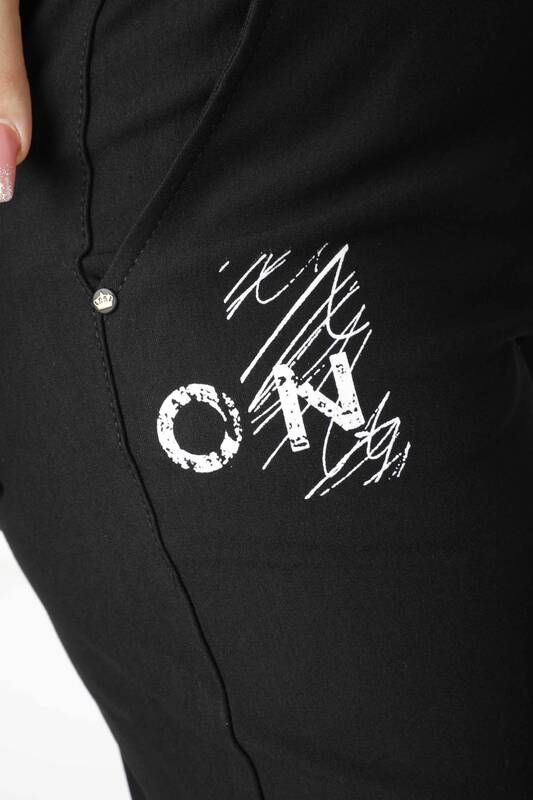 Pantaloni Negri cu Buzunar Detaliu și Scriere - 3711 | KAZEE (Set de 4 42-44-46-48)