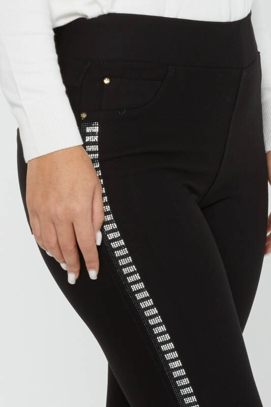 Pantaloni Stripe Stone Brodat Buzunar Negru - 3748 | KAZEE (Set de 4 42-44-46-48)