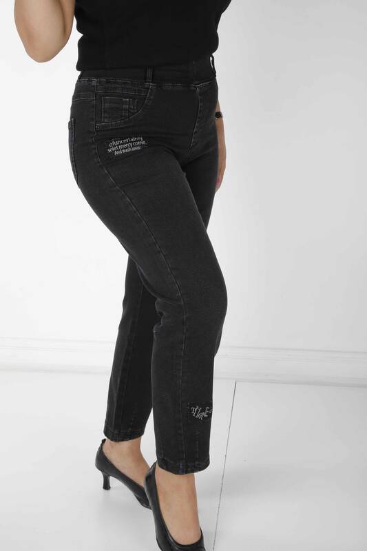 Pantaloni neri con dettaglio testo e tasche - 3782 | KAZEE (Set da 5 42-44-46-48-50)