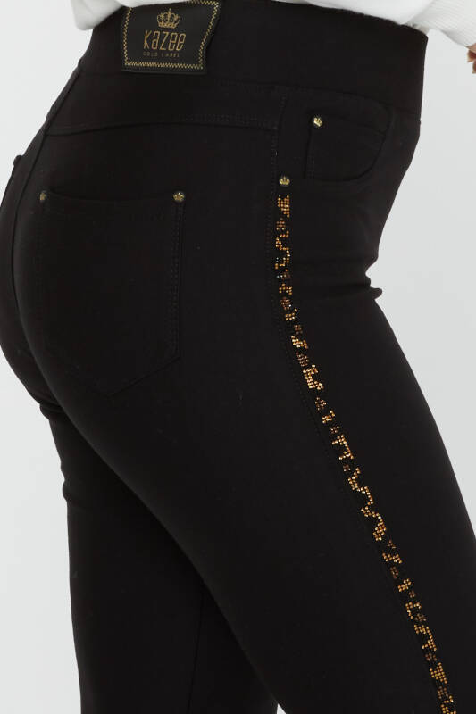 Pantolon Leopar Taş İşlemeli Siyah - 3726 | KAZEE (4'lü Set 36-38-40-42)
