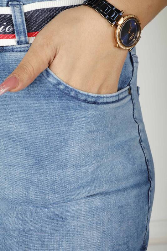 Niebieskie spodnie z paskiem i kieszeniami - 3691 | KAZEE (zestaw 4 szt. 42-44-46-48)