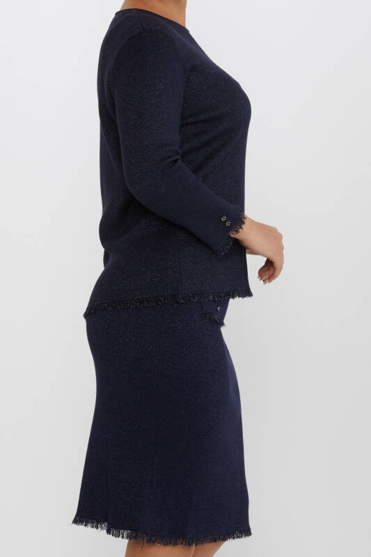 Podwójny garnitur z frędzlami, szczegółowo zapinany na guziki, granatowy - 30868 | KAZEE (zestaw 4 sztuk M-L-XL-2XL)