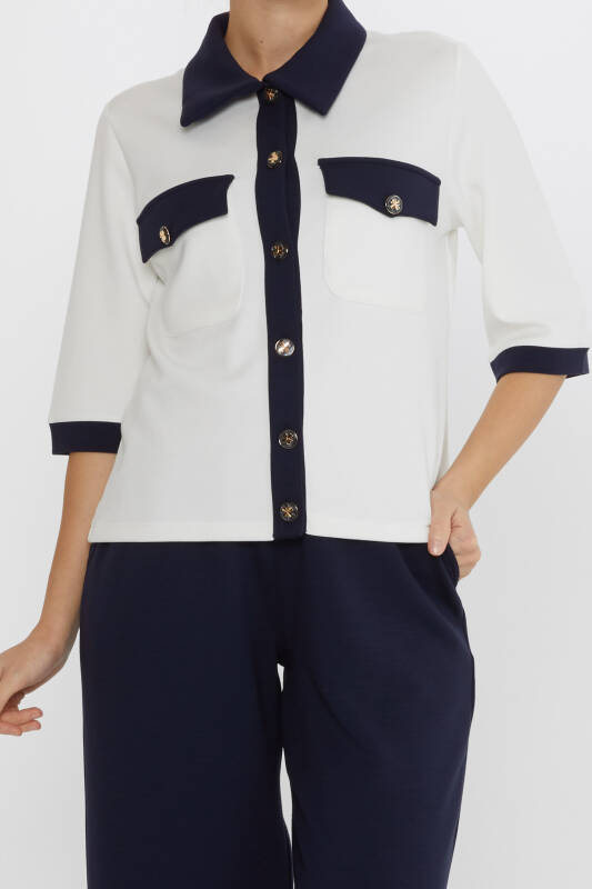 Podwójny garnitur z kieszeniami i guzikami Granatowy - 17877 | KAZEE (zestaw 3 sztuk M-L-XL)