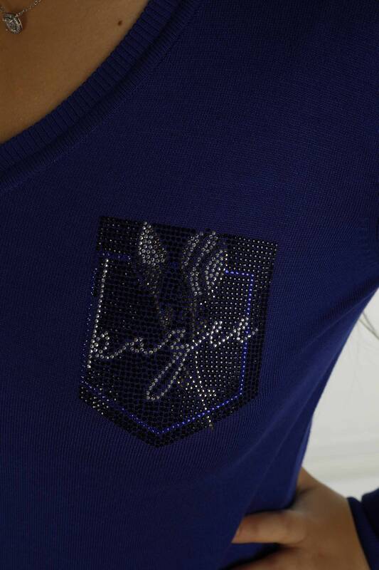 Prendas de punto de manga larga con cuello en V y detalles de piedra Saks - 30751 | KAZEE