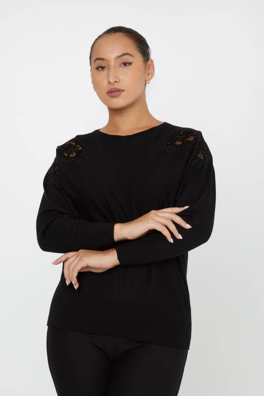 Pull en maille avec épaules en tulle et détails brodés en pierre noire - 30903 | KAZEE (Lot de 4 L-XL-2XL-3XL)